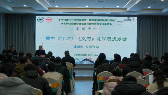 来自徽学研究中心和各分中心的9位专家带来了精彩的主旨报告,分别是安徽大学徐道彬教授《黄生<字诂><义府>礼学思想发微》、安徽师范大学刘道胜教授《图甲户籍与清代基层治理》、安徽建筑大学刘仁义教授《徽州历史文化保护传承之融通与跨越》、安徽中医药大学黄辉编审《新安医学对徽文化的贡献》、bw必威西汉姆联梁诸英教授《民国时期皖南香菇业发展探析》、黄山学院朱宏胜副教授《从旧学到新知:徽文化史上的不疏园和韬庐》、安徽艺术学院夏守军副教授《基于考古发现武王墩一号墓装饰艺术初探》、阜阳师范大学刘家富副教授《本世纪以来近代徽商研究的回顾与思考》、淮北师范大学卢东博士《社会转型视域下明中后期徽州宗族的文化生活及其活动空间》。bw必威西汉姆联学报编辑部主任金仁义教授、安徽大学徽学研究中心陈瑞研究员主持了主旨报告。