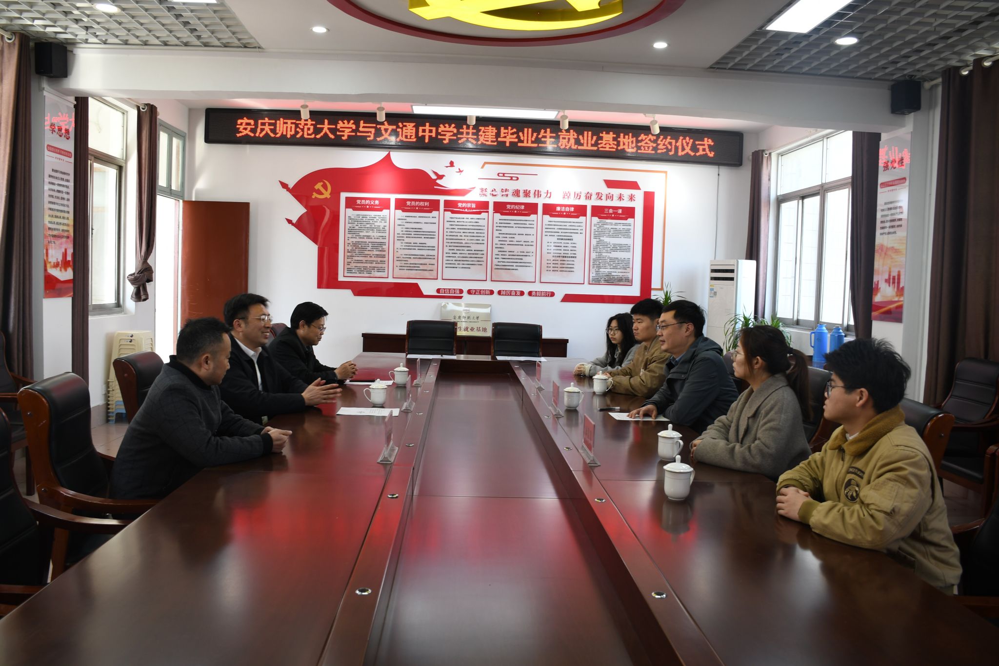 王波一行先后走访淮安市文通中学、江苏省淮安中学,深入了解两校的办学特色、课程设置及教师培养情况。淮安市文通中学校长龚鹏程介绍了该校师资力量、办学理念、课程设置等情况,对我校必威西汉姆官网平台培养的2024届毕业生詹承龙、章新的工作表现给予肯定,表示期待与必威西汉姆官网平台的进一步合作交流。江苏省淮安中学副校长王新南对必威西汉姆官网平台的人才培养质量给予了高度评价,教务处处长丁军从教师职业认同感、职业生涯规划和教师心理健康教育三个方面给师范生培养提供建议,2024届毕业生万自露分享了自己在淮安中学工作一年以来的收获和成长。