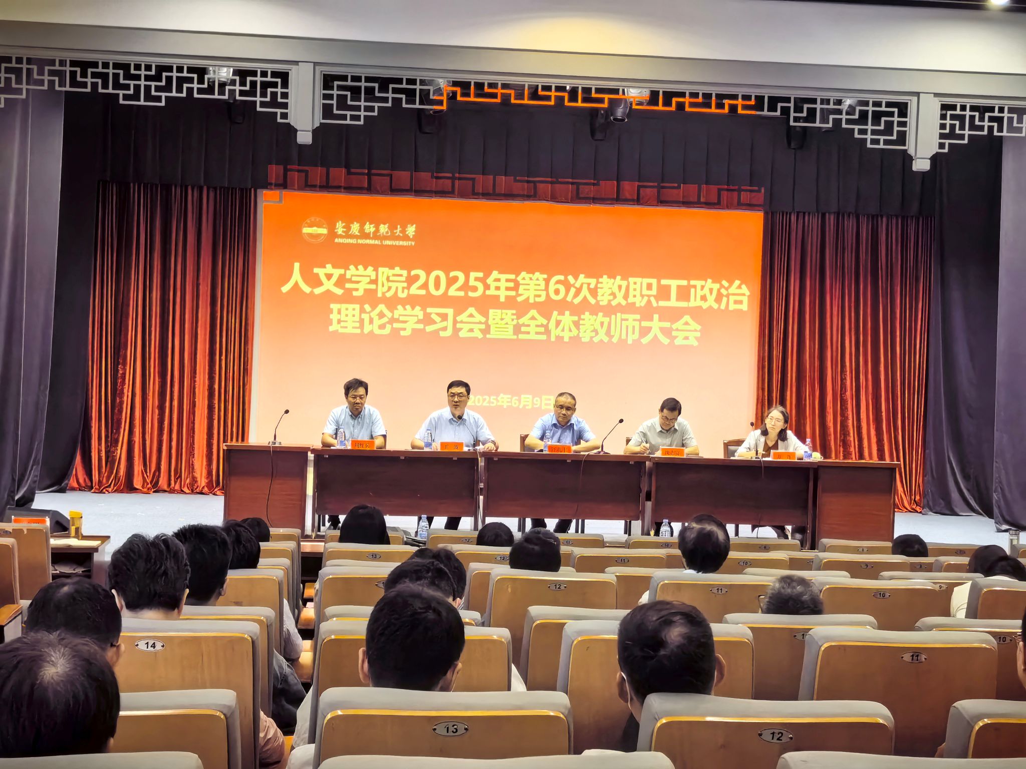 6月9日,必威西汉姆官网平台在菱湖校区图书馆报告厅召开2025年第6次教职工政治理论学习会暨全体教师大会。会议由院长汪孔丰主持,全体教职工参加会议。