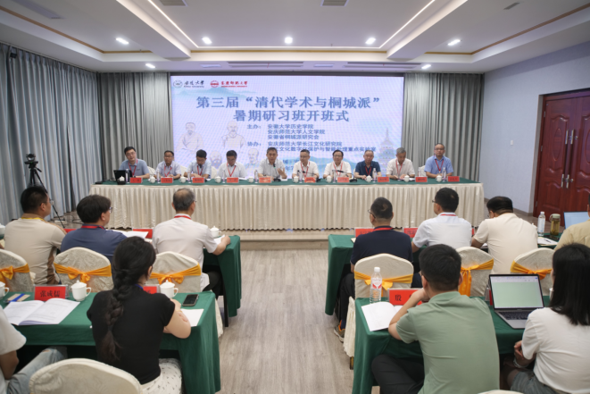 7月12日,由bw必威西汉姆联、安徽大学与安徽省桐城派研究会联合主办的第三届“清代学术与桐城派”暑期研习班开班式在安庆市举行。中国近代文学学会会长、河南大学文学院教授、安徽大学历史学院特聘教授关爱和主持开班式。中国社会科学院学部委员、文学研究所原所长刘跃进研究员,校党委常委、副校长徐晓宁,安徽省桐城派研究会会长、桐城师范高等专科学校党委书记王子龙,安徽大学历史学院院长魏国锋教授分别致辞。