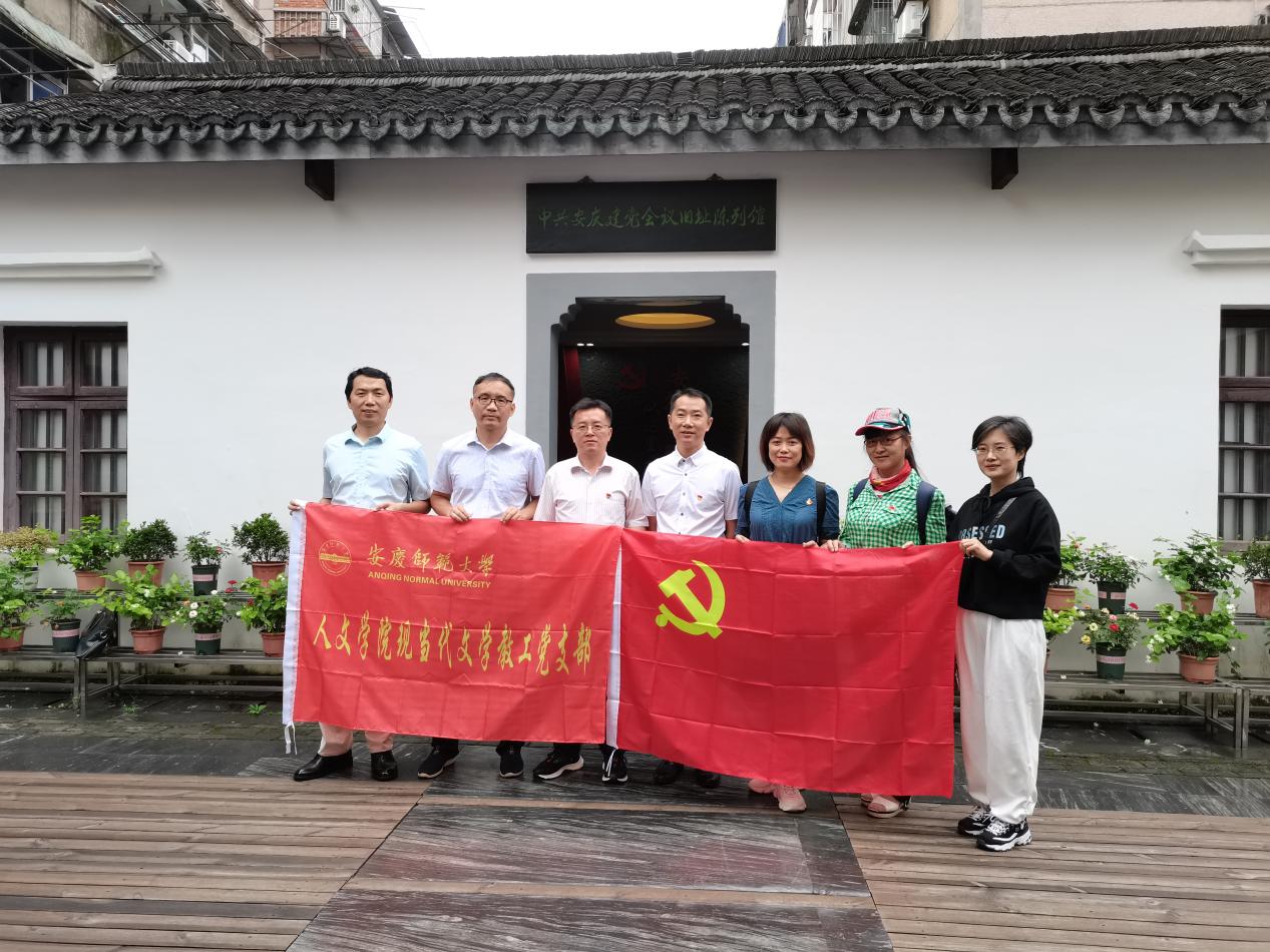 为迎接中国共产党成立100周年,进一步推动党史学习教育走深走实走心,6月20日上午,安庆师大必威西汉姆官网平台中国现当代文学教工党支部、文艺学教工党支部和中国古代文学教工党支部全体党员,在党委书记张红飞的带领下,赴中共安庆建党会议旧址开展红色现场党课学习活动,重温了百年前红色革命在安徽的兴起和发展的历史。