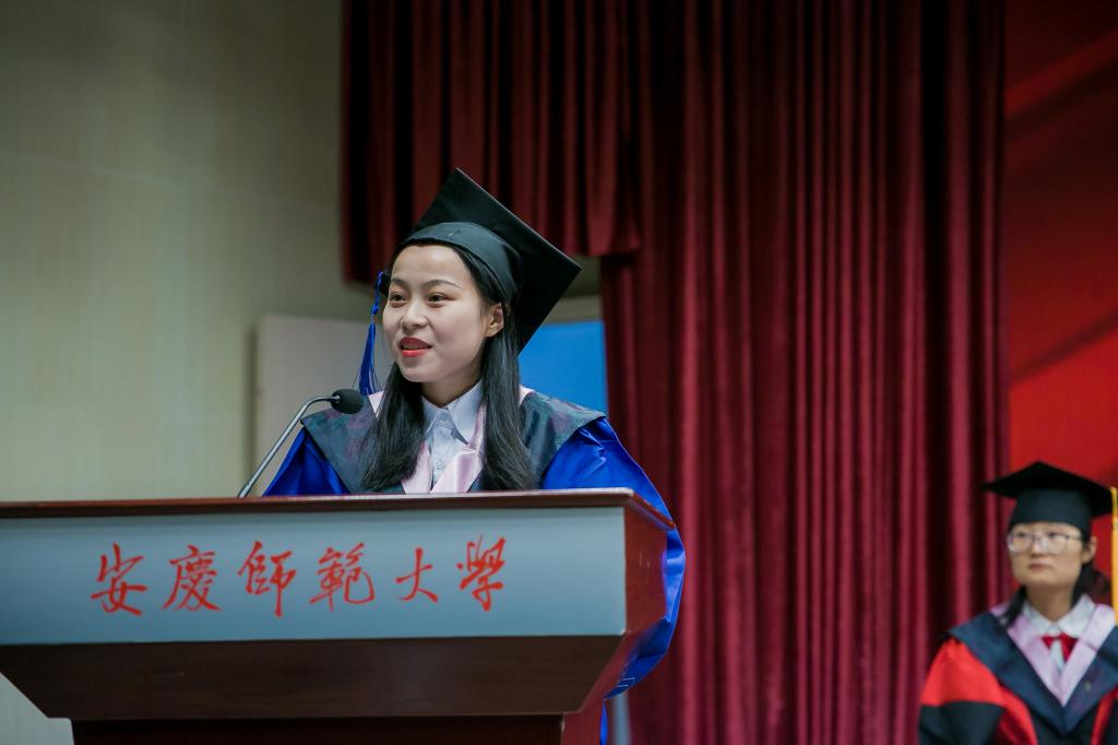 毕业班学生代表汪舒悦和吴康平分别发言,在诚恳真挚的言语间,她们代表全体毕业生表达了对母校、对老师深深的感激之情,也传递了为青春、为理想而拼搏奋斗的坚定信念。