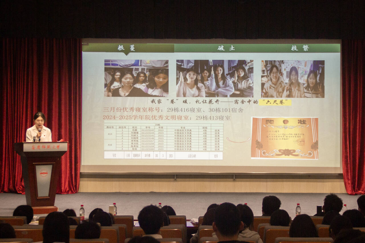 各班围绕班级管理、学风建设、文化营造、志愿服务等方面,结合专业特色,全面呈现班级建设成果。汇报现场亮点纷呈,特色鲜明。2023级汉语言文学专业(7)班以“思想引领+集体聚力”为主线,通过党团建设、主题班会带动班级同学学科与文体竞赛参与率实现100%;2023级历史学专业(2)班发起“校史讲述人”系列活动,实现专业学习与服务实践深度融合;2024级汉语言文学专业(2)班实施“班委轮讲制”,定期总结班务、共商发展计划,推动集体议事成为凝聚共识的重要机制;2024级汉语言文学文典班以学生学术能力锻炼为例,彰显了班级学风建设实效。