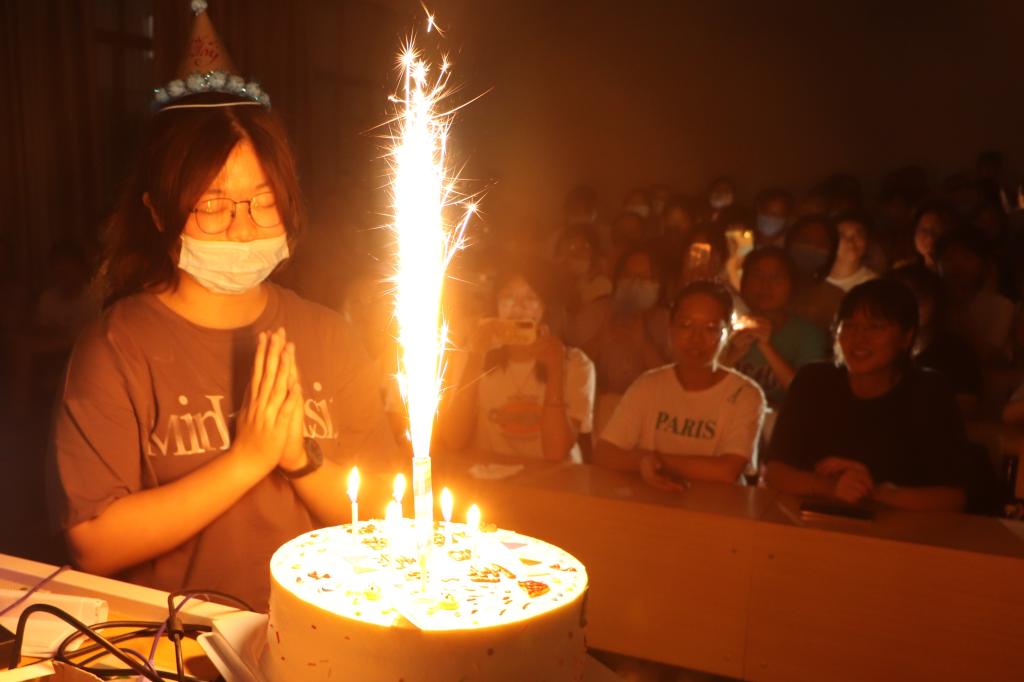 “看到学姐捧着点了蜡烛的蛋糕踏入教室的时候,我真的惊喜到了!”中国语言文学类2021(5)班的王青很是激动,“我完全没有想到学校会在开学这天给我过十八岁生日,除了父母,我还收到了来自老师、学姐和46名新同学的祝福,这让我的‘成人礼’仪式感满满!”