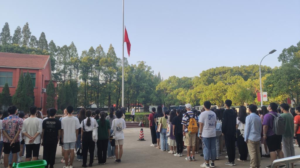 为了缅怀先烈,同学们低头肃立,全体默哀,致敬九一八事变烈士们。默哀仪式结束后,全体同学在准备好的横幅上签名或是留下自己的感悟。一时间,他们纷纷写下了自己的感悟,有对革命先烈的缅怀,有对历史的铭记,也有对伟大祖国的赞美。