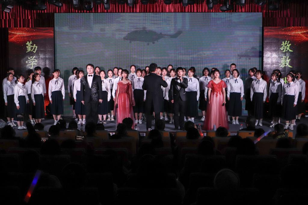 在活力四射的音乐中,一段青春洋溢的舞蹈拉开了晚会的序幕。民乐表演《永不失联的爱》里,演奏者各执长笛、手弹古筝等中华传统乐器与电子琴配合默契,齐奏悦耳旋律。优美的舞姿、柔软的身姿,随着悠扬的纯音乐,古典舞《美人关》给学生们带来了一场视觉和听觉的盛宴。