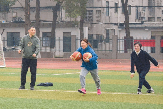 比赛现场,各类项目正如火如荼地进行。“预备,开始!”托球跑项目中,老师们手持羽毛球拍,将目光集中在忽左忽右的网球上,拖着网球小心而迅速地往前跑,这十分考验老师们的专注力和平衡力,稍有不慎便会“功亏一篑”。