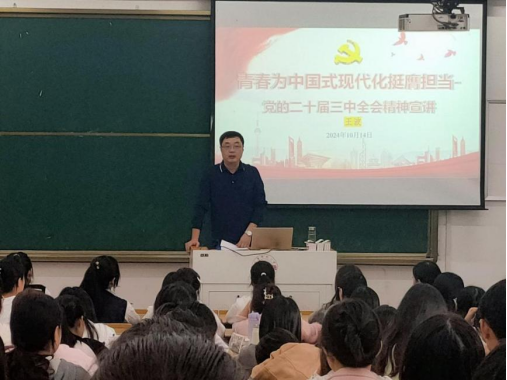 开班典礼结束后,王波结合“中国共产党党员条件与当代大学生入党程序和动机”专题,以“青春为中国式现代化挺膺担当-党的二十届三中全会精神宣讲”为主题开展理论宣讲,系统讲述自党的十一届三中全会以来,党的历届三中全会对党和国家发展的重大意义,并对党的二十届三中全会的时代意义和历史意义等内容作了细致讲解,勉励同学们认真学习、严于律己、争作表率,争取早日成为一名合格的共产党员,在为中国式现代化挺膺担当中展现青春作为、彰显青春风采、贡献青春力量。