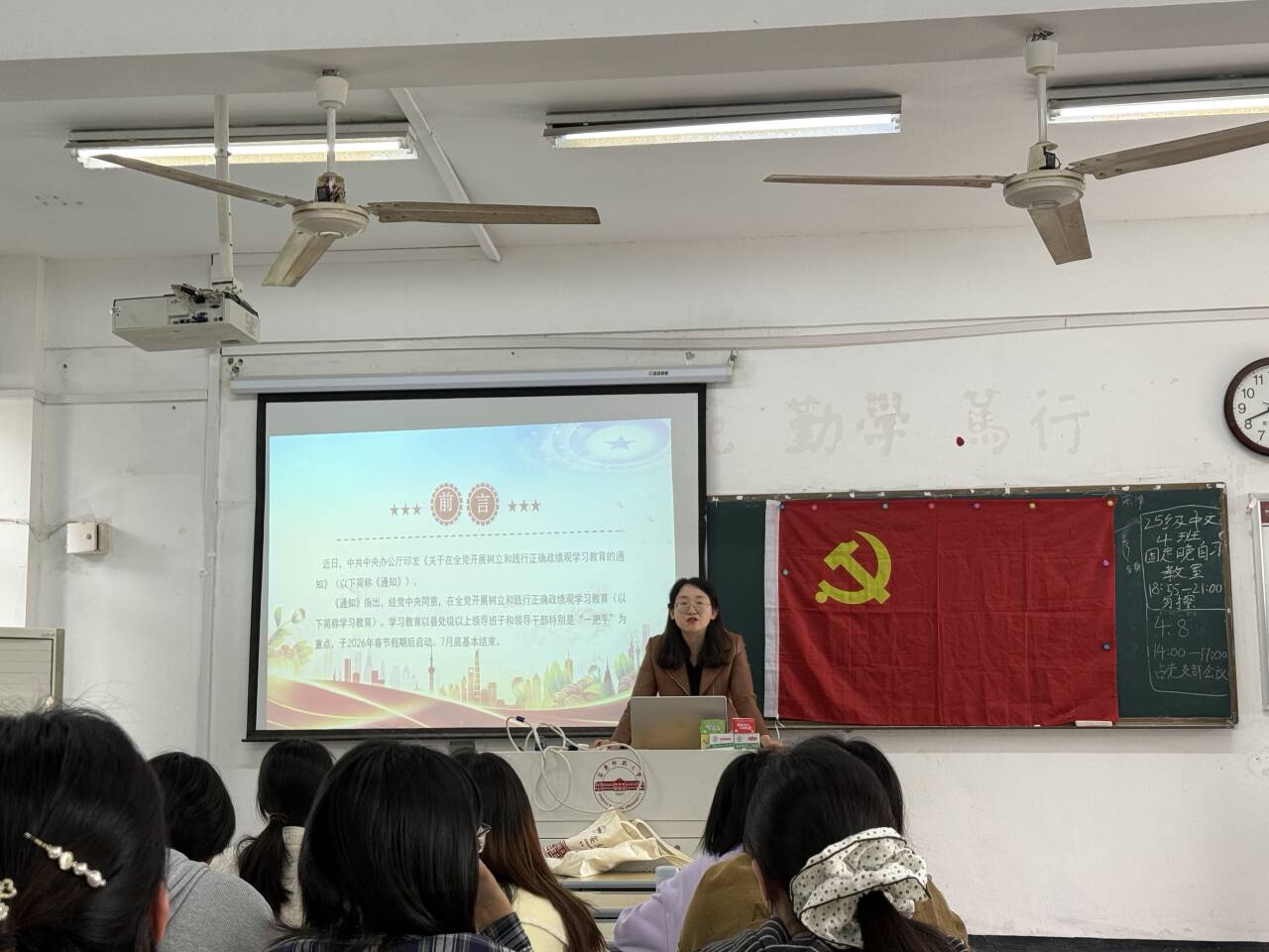 2026年4月8日,必威西汉姆官网平台学硕党支部书记方蓬为支部党员、入党积极分子讲授“树立和践行正确政绩观”专题党课。