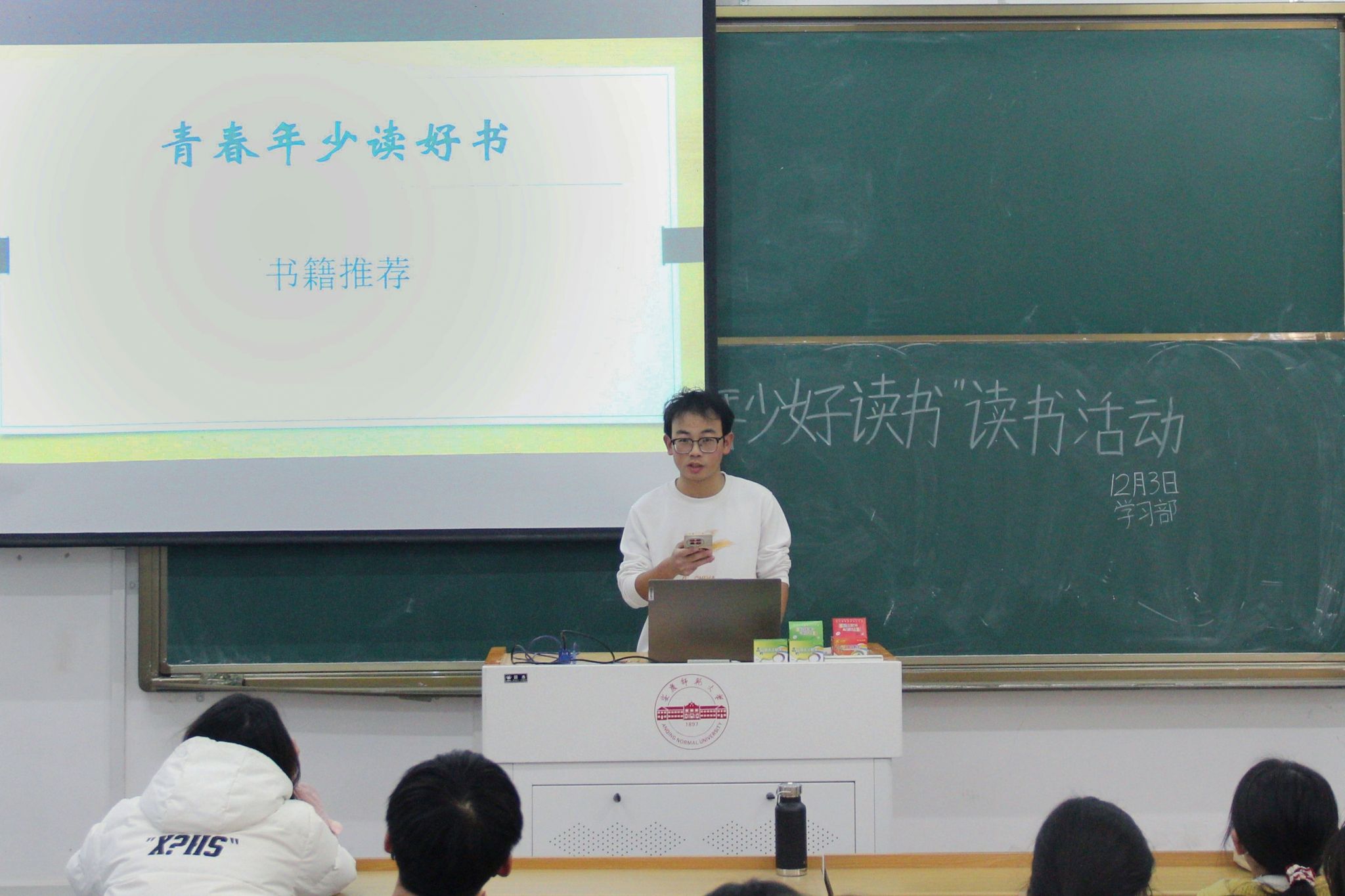 12月6日,必威西汉姆官网平台团委、学生会于教学楼214教室举办“青春年少好读书”主题活动,通过学生领读、经典诵读、心得分享等形式,让同学们在交流中碰撞思想、在品读中感悟真谛。