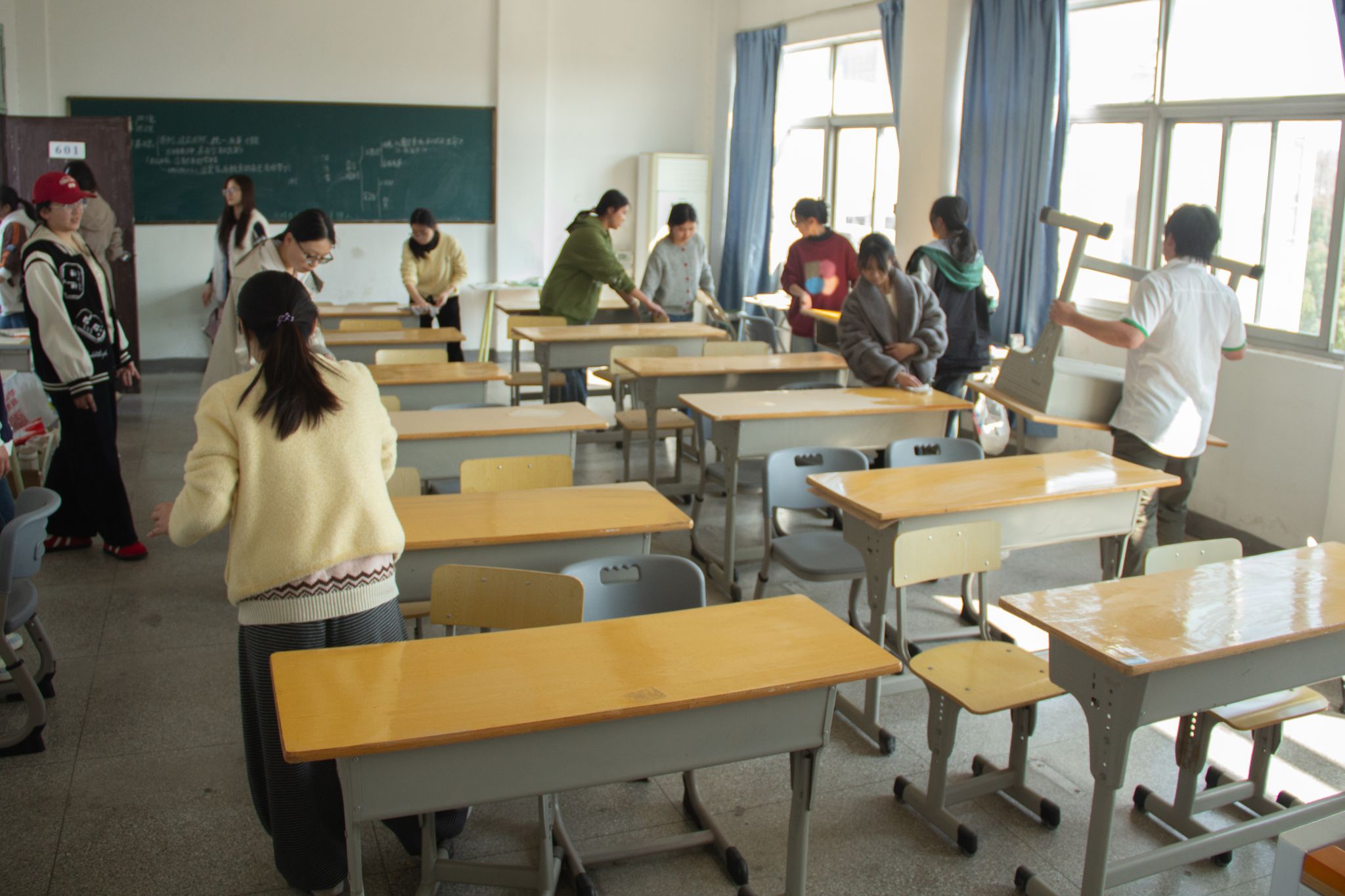 活动当天,志愿者们将菱湖校区教学楼六楼的闲置教室重新整理布置。搬运桌椅、清扫地面、擦拭窗台……原本堆满杂物的3间教室,在同学们的协作下焕然一新。“学院是我们共同的大家庭,能为考研的学长学姐出份力,再累也值得。”2025级汉语言文学专业文典班的任思怡一边擦拭桌椅,一边说。更值得关注的是,“暖心自习室”也是校园资源的高效利用。闲置教室被盘活,学生的实际需求得到回应,“我为同学做实事”从一句承诺落地为看得见的温暖。目前,自习室已迎来首批考研学子。