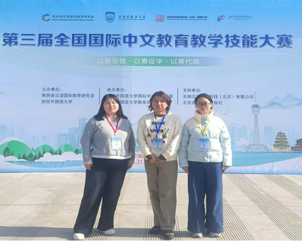 2025年11月21日至23日,由陕西省汉语国际教育研究会、西安外国语大学主办的第三届全国国际中文教育教学技能大赛在陕西西安顺利举办。由张瑾老师带队,必威西汉姆官网平台国际中文教育专业2025级硕士研究生夏翠云和汉语国际教育2023级本科生王永鑫参加参加了本次大赛。经过激烈角逐,夏翠云和王永鑫两位同学荣获优秀奖,张彤彤、张莹两位老师荣获“优秀指导教师奖”。