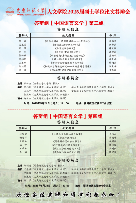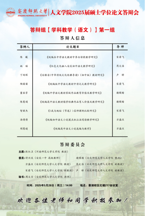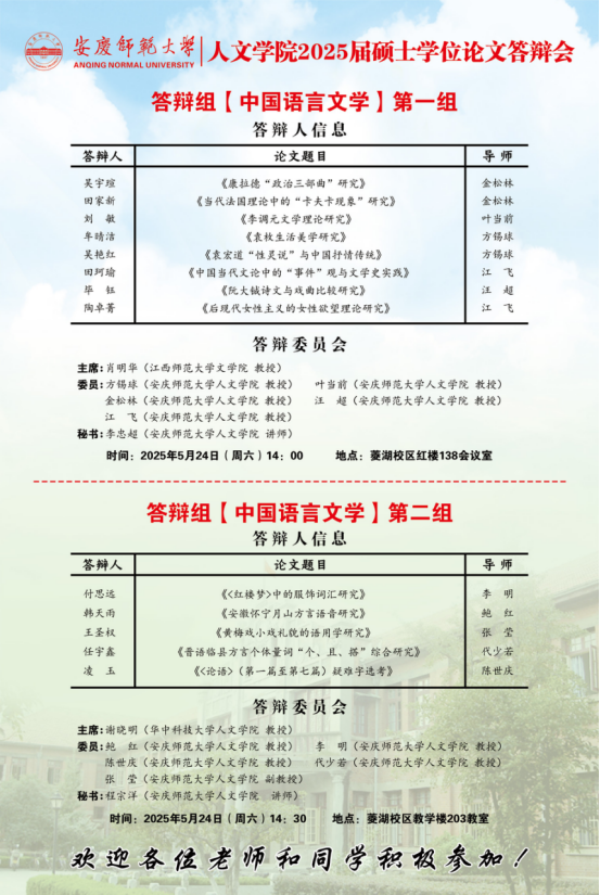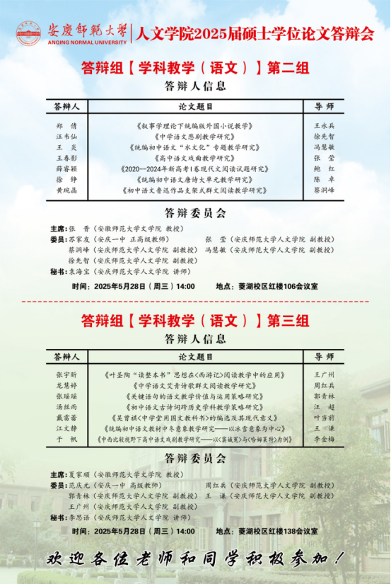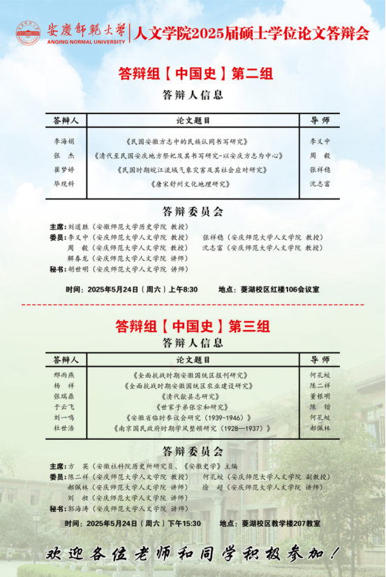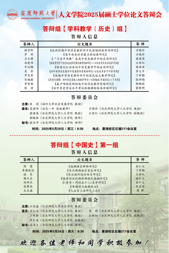 必威西汉姆官网平台2025年上半年硕士研究生学位论文答辩工作安排【中国语言文学组、中国史组、学科教学(语文)组、学科教学(历史)组】