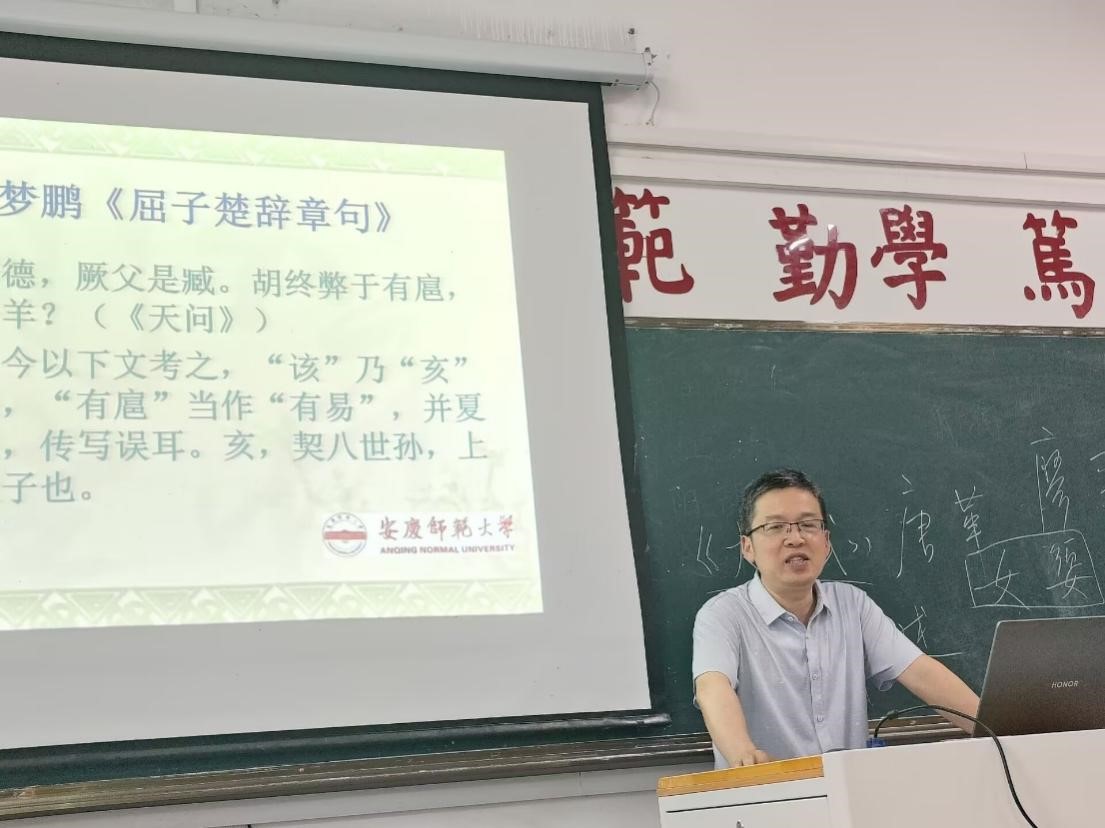 5月20日下午,第34期菱湖学术沙龙在304教室举行,必威西汉姆官网平台谢模楷教授作“屈原及其楚辞研究的困境与思考”的报告,必威西汉姆官网平台赵长杰博士担任主持人,2023级文典班全体同学聆听了谢老师的精彩演讲。
