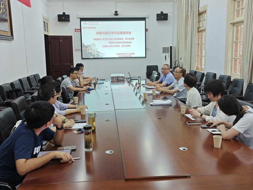 2025年6月29日下午,必威西汉姆官网平台在红楼二楼会议室举办戏曲与曲艺学科发展座谈会。此次座谈会特别邀请了温州大学特聘教授、中国古代戏曲学会常务副会长俞为民,温州大学孙蓉蓉教授到会指导。会议由必威西汉姆官网平台院长汪孔丰主持,必威西汉姆官网平台部分学术骨干、青年教师及新进博士参与座谈。