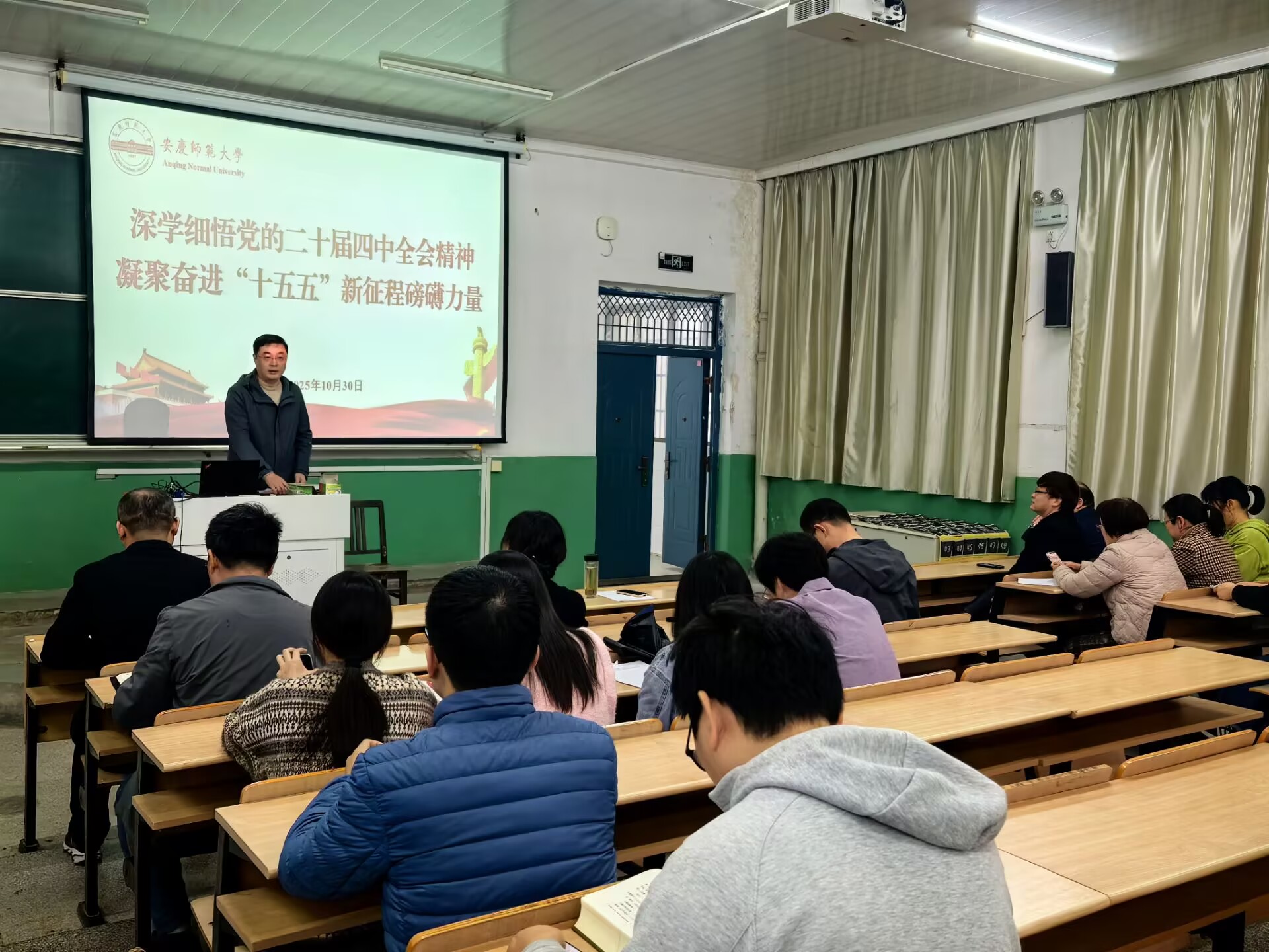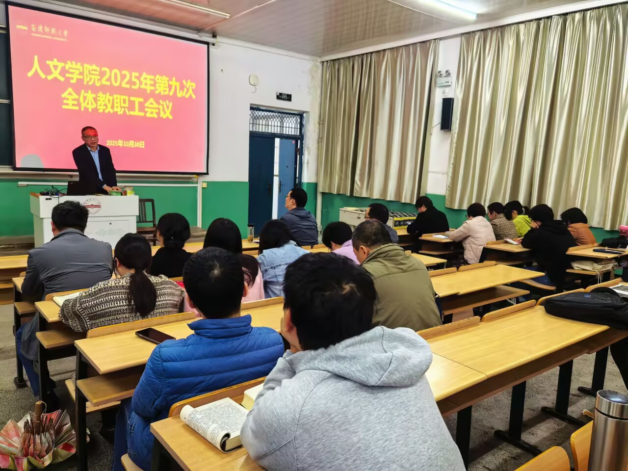 10月30日,必威西汉姆官网平台召开2025年第九次全体教职工会议,开展党的二十届四中全会精神宣讲并部署近期重点工作。学院领导班子及全体教职工参加会议,院长汪孔丰主持会议。党委书记王波以“深学四中全会精神 奋进‘十五五’新征程”为主题做了党的二十届四中全会精神宣讲。