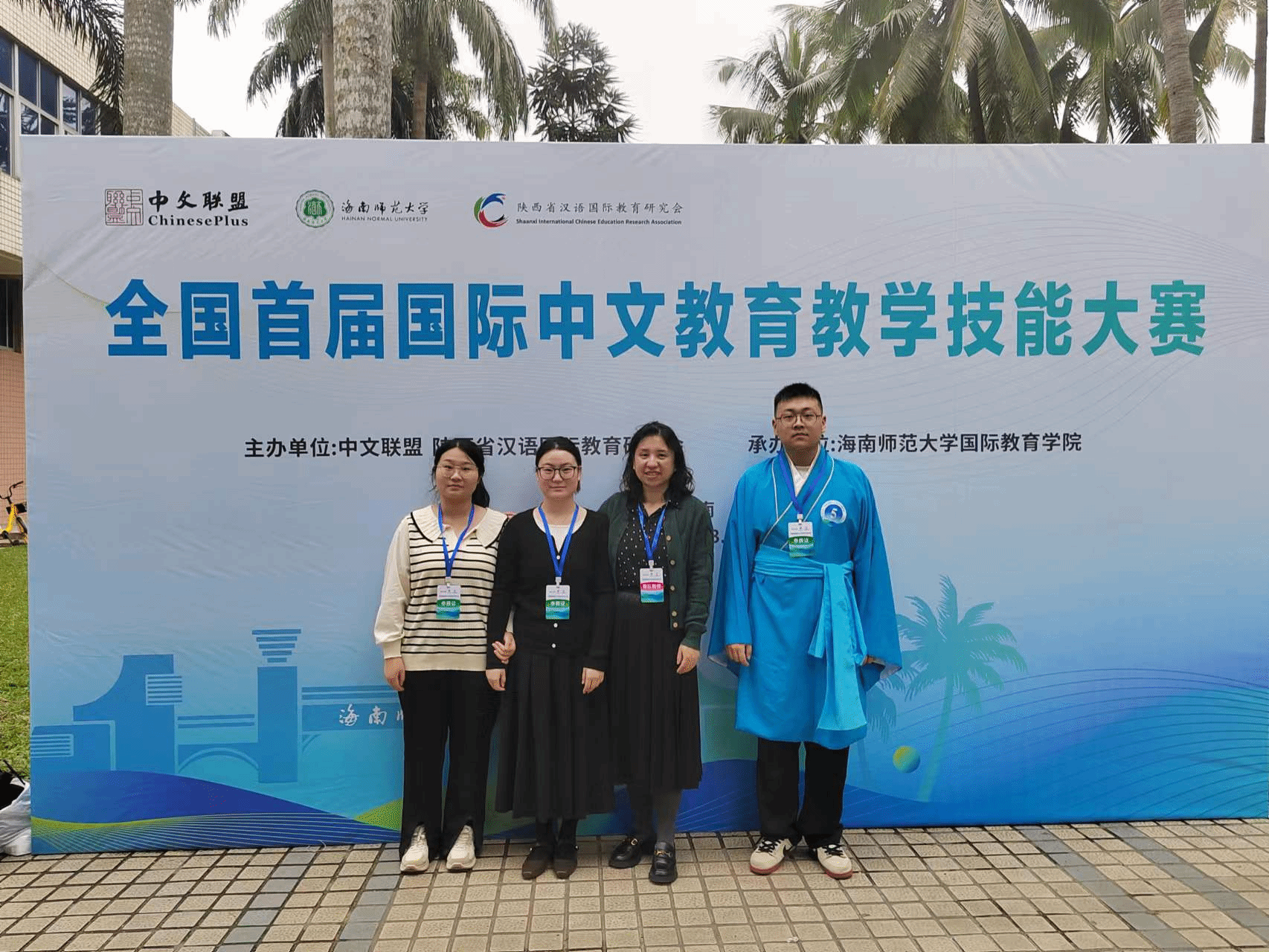 由汉语国际教育研究会与中文联盟、海南师范大学共同主办“全国首届国际中文教育教学技能大赛”于2023年12月2日至3日在海南师范大学龙昆南校区成功举办。必威西汉姆官网平台张瑾老师带队,2022级汉语国际教育专业张佳怡、胡晓凤、2023级国际中文教育硕士生罗浩诚三名选手赴海口参赛。