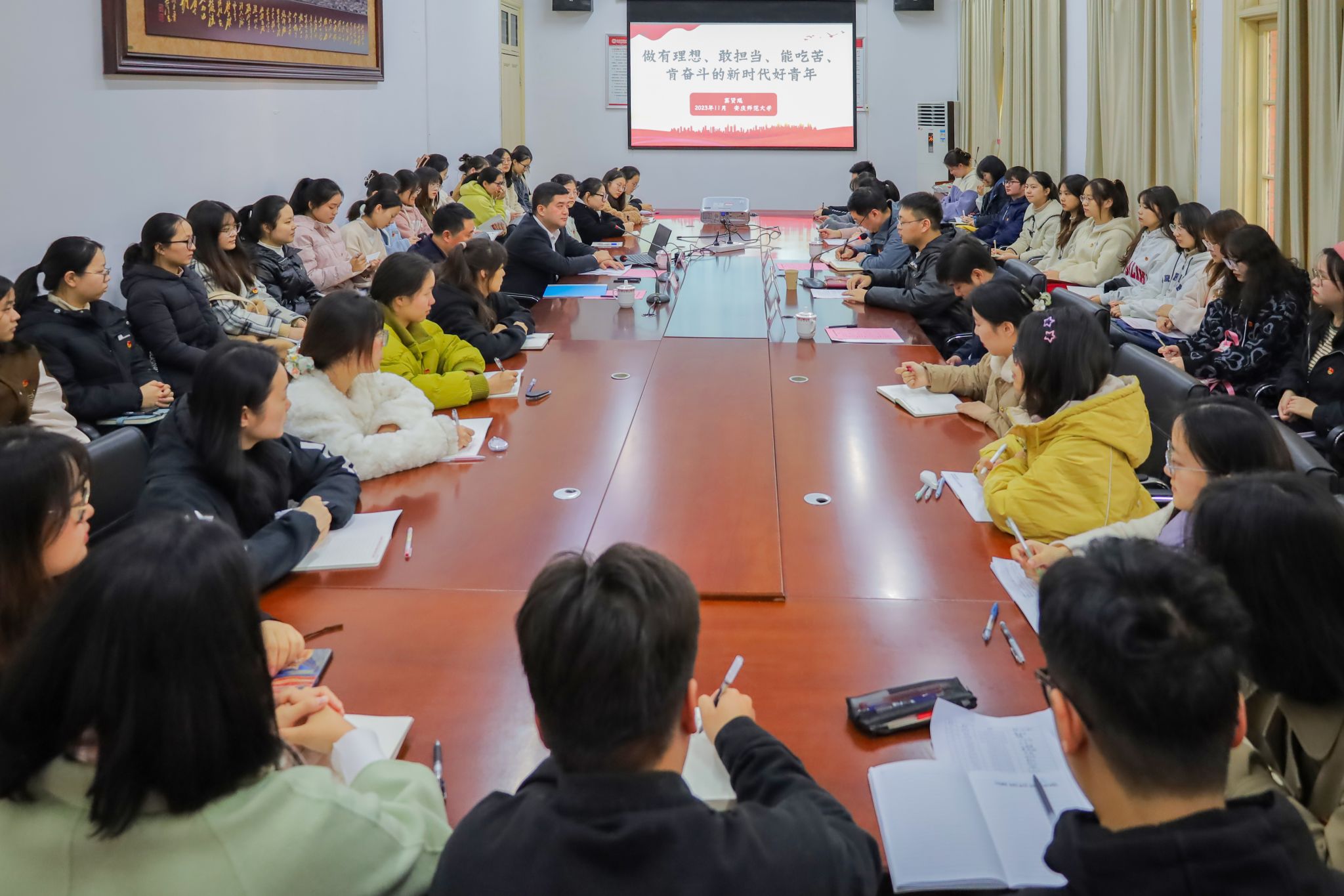 11月16日,必威西汉姆官网平台举办“红楼·青锋”论坛专家报告会,共青团安徽省委副书记窦贤琨、安徽省社会科学院办公室主任何长辉博士受邀做主旨报告,并与青年学生一道共谈青年工作,共话使命担当。报告会前,在校党委常委张红飞的陪同下,校长彭凤莲亲切会见了窦贤琨书记一行。校团委、必威西汉姆官网平台相关负责人与必威西汉姆官网平台青马班学员、省级样板党支部党员代表、学生干部代表、青年团员代表等参加会议。
