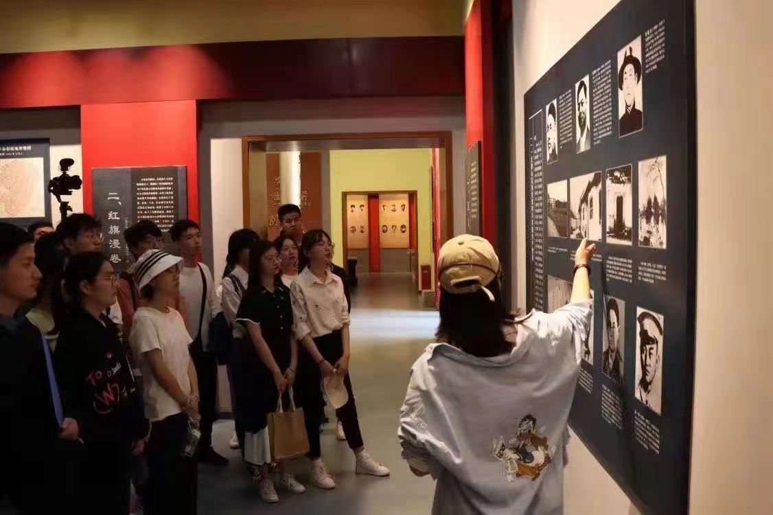 参观王步文故居期间,话剧社的同学们换上演出服,站在堂厅上演话剧《王步文》中的情节,“我时常在想我们的国家也要去学习俄国,来联合劳苦大众去取得革命的胜利!”,王步文饰演者,来自2019级汉语言文学一班的李子健激昂地说道。这一声简单的口号,喊出了王步文作为革命者的坦荡胸怀,为实现共产主义奋斗终身的坚定信念。学生第二党支部党员,2019级汉语言文学七班曹鹏同学感慨道:“亲临现场的沉浸式学习,另我仿佛与王步文进行了超越时空的对话,这让我更加理解革命先烈为了理想信念甘愿献出生命的大无畏精神。通过本次参观学习,我更加明白理想信念就是共产党人的政治灵魂,我立志要把自己的青春奉献给祖国,奉献给实现中华民族伟大复兴的中国梦的宏图伟业。”
