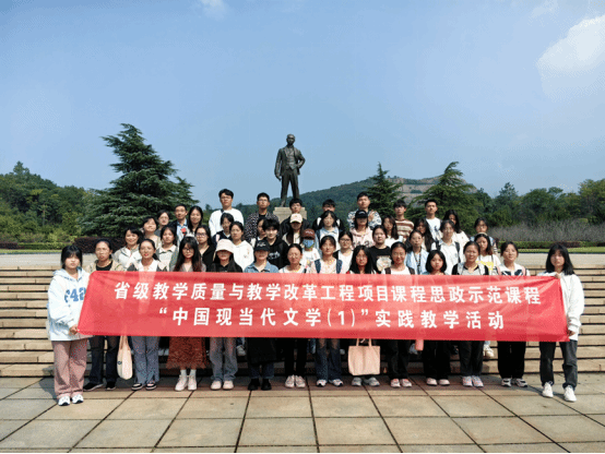 为全面推进课程思政示范课程建设,10月13日,必威西汉姆官网平台中国现当代文学教工党支部书记、教研室主任,省级课程思政示范课程“中国现当代文学(1)”负责人冯慧敏带领中国语言文学类2023级6班前往独秀园开展实践教学活动。现当代文学教工党支部安刚强、黄晶晶、胡莎三位老师参与指导。本次实践教学活动也是现当代文学教工支部建设的一项特色活动,支部一直坚持党建引领,聚焦课堂改革,开展本次活动旨在探索课程思政教学的新形式、新路径。