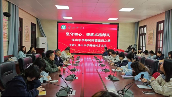 上午十点,在学校报告厅,浮山中学副校长方友生为师生们带来了一场精彩的师德讲座。这位从教多年的教育工作者,将自己毕生的经验娓娓道来,“师风师德,是教育之魂,关乎学生成长、学校发展乃至整个教育事业的兴衰”,以此告诉我们师风师德的重要性。 接着他分别从“百年传承”、“制度保障”、“文化滋养”、“实践成果”等四个方面来传授自己的经验,令同学们受益匪浅。讲座结束后,同学们争相提问,现场互动尤为热烈。