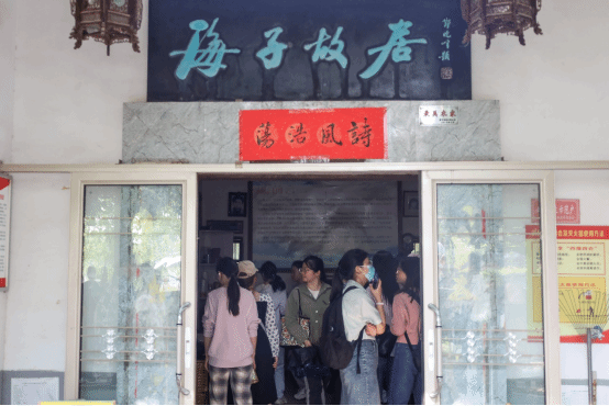 “五岁的黎明,五岁的马,你面朝江水,坐下……可能是姻缘,也可能是友情。”在本次实践教学的第一站——海子故居及其纪念馆,必威西汉姆官网平台学子在海子故居门前的广场上,齐声朗诵了海子的诗歌《给安庆》。海子原名查海生,是当代著名诗人,在他短暂的一生中,共创作了近200万字的作品。海子的故居是一座简朴的小瓦房,屋内悬挂有海子的照片,并保留着海子书房。其中一本记录来访者留言的笔记本上,记录了许多当代诗人对海子的赞美和怀念。在故居旁的海子纪念馆中,陈列有海子的生前遗物,完整呈现了海子一生的经历,展示了他各个时期所创作的诗歌作品。师生们低吟着海子的诗句,回顾了他短暂而又灿烂的一生。对海子故居的调研之行实现了让书中人物“活过来”,有利于增强人文学子对所学专业的感性认识,提升专业认知水平。